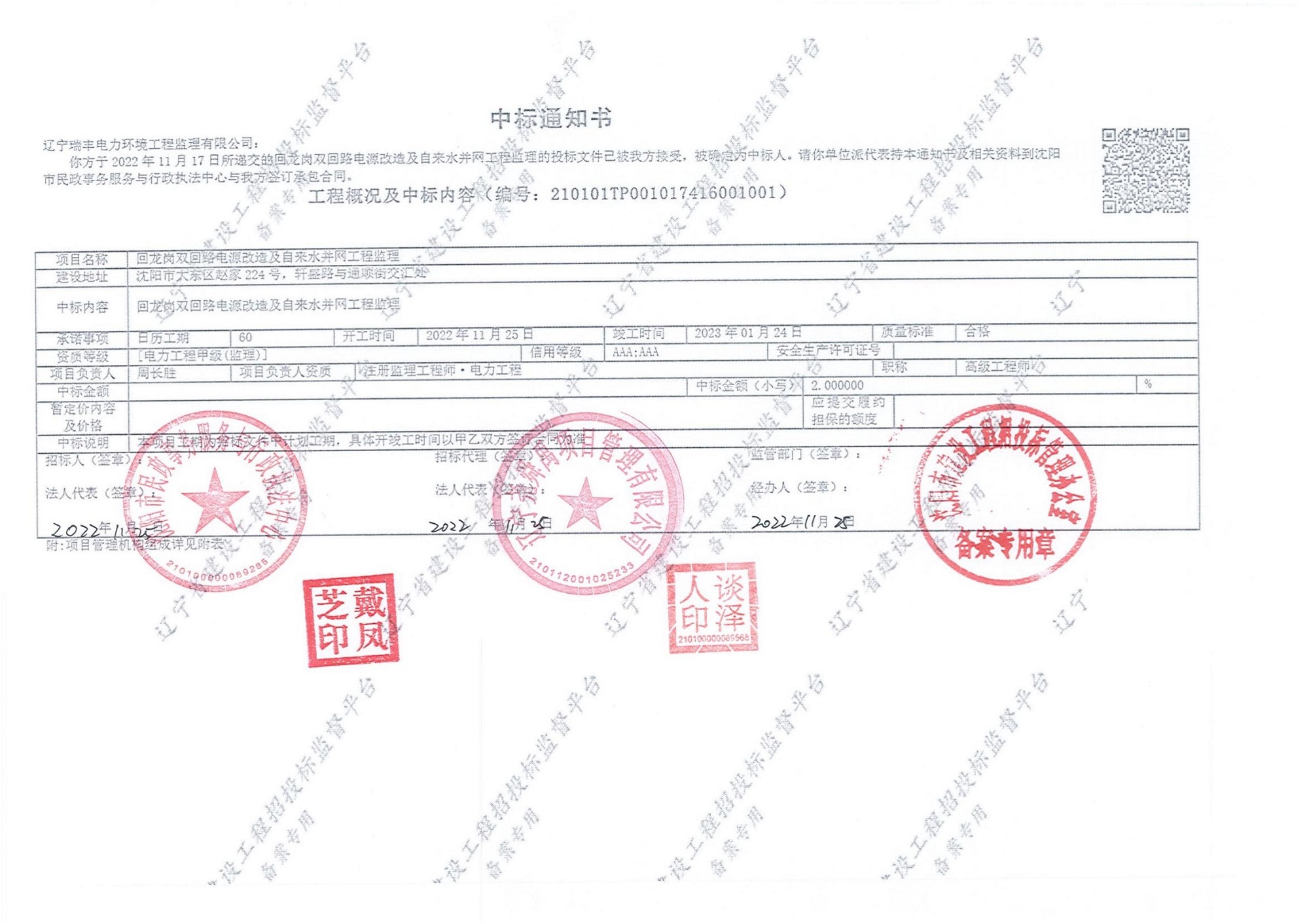 公司具有電力工程監(jiān)理甲級、房屋建筑工程監(jiān)理乙級、市政公用工程監(jiān)理乙級、化工石油監(jiān)理乙級資質(zhì)和建設(shè)項目環(huán)境監(jiān)理資質(zhì)。主要開展電力工程、房屋建筑工程、市政公用工程、化工石油工程的監(jiān)理、項目管理、技術(shù)咨詢和各類建設(shè)項目環(huán)境監(jiān)理、環(huán)保驗收、環(huán)保技術(shù)咨詢等技術(shù)服務業(yè)務。是遼寧省一家環(huán)境監(jiān)理和這四項工程監(jiān)理資質(zhì)同時具備的監(jiān)理企業(yè)。 |